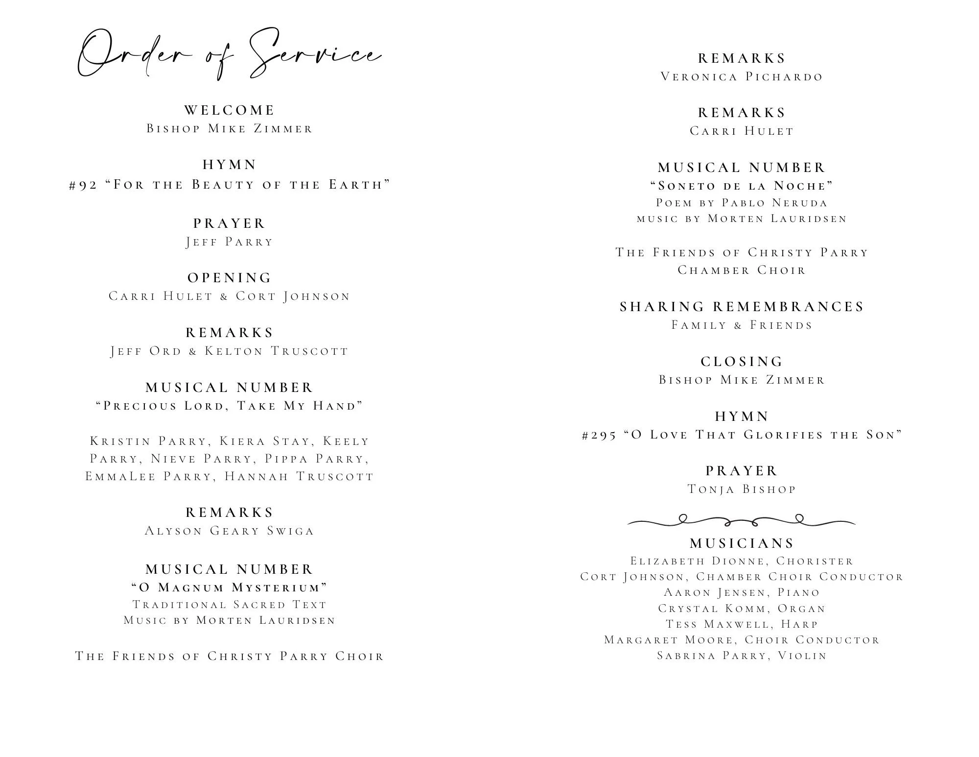 Utah Memorial Service April 27, 2024 Utah Program, Jeff Ord’s Poem & CHristy Parry’s Cookie REcipe Massachusetts Memorial service May 04, 2024 Massachusetts program, Choral songs with translation